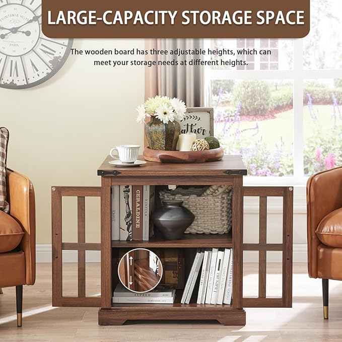 - Eye-catching Farmhouse design : Give your space a dose of country style with this Natural Wood Farmhouse End Table! Youβll love the rustic details of its tempered glass door and barn door design On the side. Its natural wood finish is sure to lighten up your space.