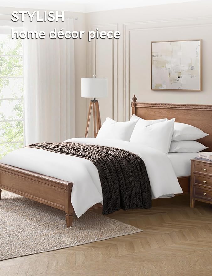 YnM Chunky Cotton Knit Throw Blanket, Cable Knit Throws for Bed Couch Sofa, Comfy & Relaxing, Decorative Piece for Farmhouse Modern Boho Rustic Scandinavian Chic Vibe, Chocolate Brown 60x80 Inches