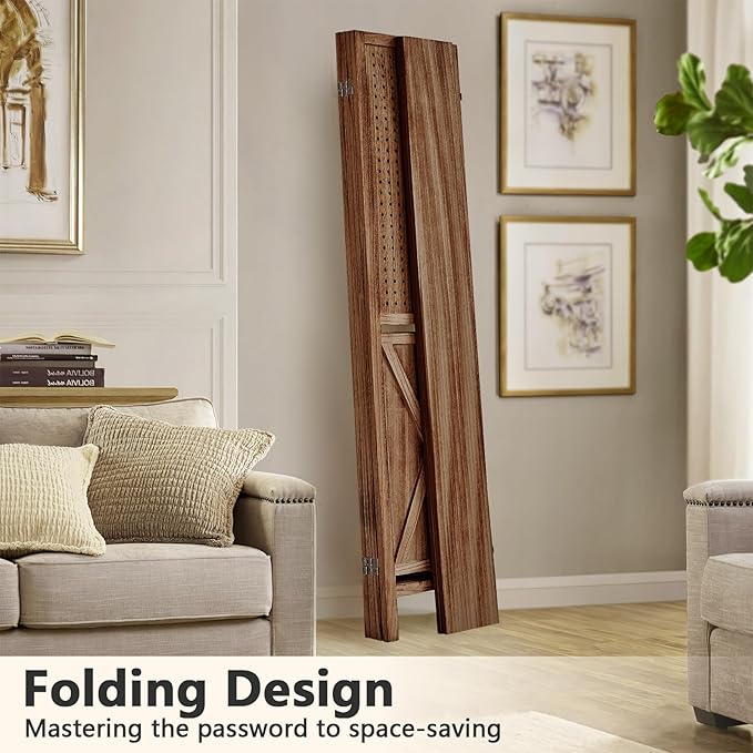 - 360° Arbitrary Folding - The room divider is connected by a two-way hinge, which allows you to fold the room divider wall 360° to any angle you want. The delicate folding design allows for a better and more efficient use of space, whether it is a small apartment or a changeable room, it can be easily managed. Once folded, it can be easily stored and hidden in a corner of the pantry, keeping your home tidy and organized and showing the wisdom of modern space management