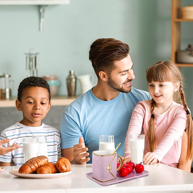 - Attractive and Elegant: the ceramic aesthetic coffee mug with saucer is characterized by handbag shapes and hand painted golden edges, and the color combination of purple and gold makes it more beautiful and graceful, which can bring both decorative and practical functions