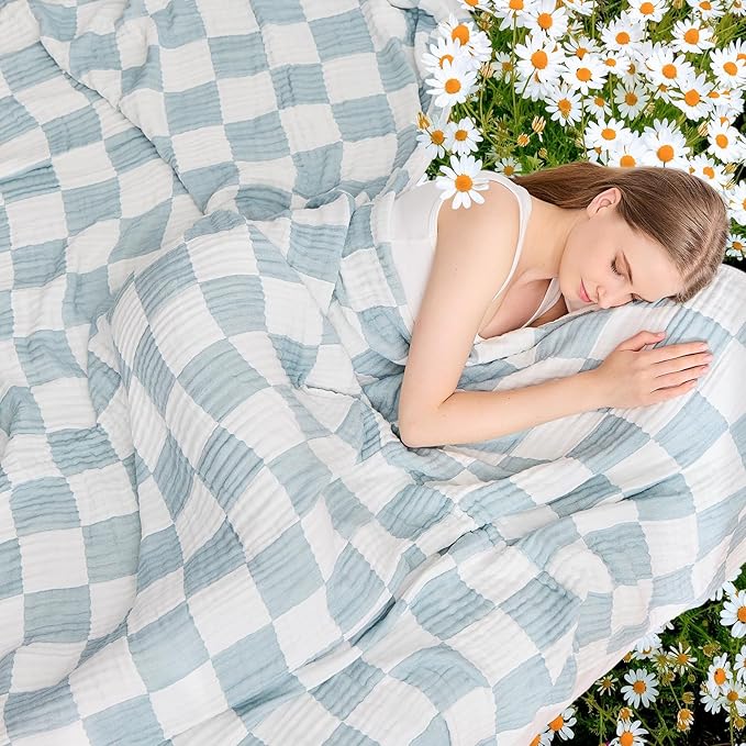 - Softness and Cooling: This checkered cotton blanket is made from 70% cotton and 30% rayon derived from bamboo, the perfect combination of softness and cool feeling . It will become your go-to blaneket at once. Perfect Gift for birthdays, housewarming, Mother's Day and other. NOT SUITABLE for PETS USE.