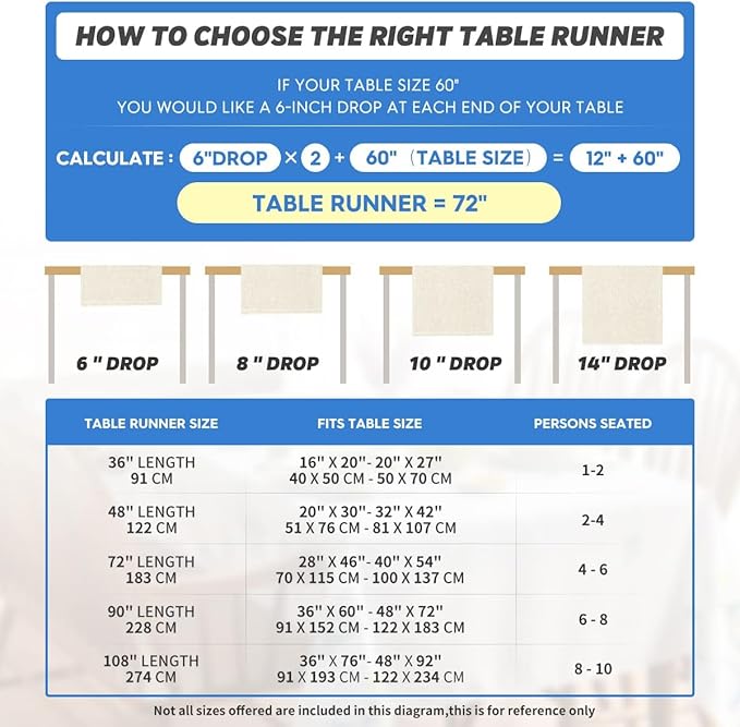 - Fits Table Size : This table runner is 13 x 108 inch, appropriate for a table that can seat 8-10 people, better match your table and give you a delightful dining experience