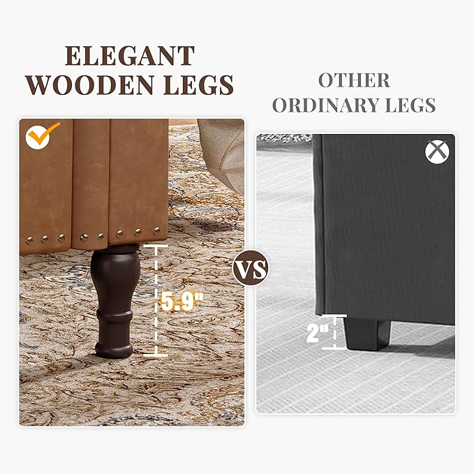 - 【ROLLED ARM & RIVET DECORATION】This bed bench combines rolled arms with vintage rivets, which can reduce wear on the bottom edges. The surface leather is closely adhered to the inner sponge, making it resistant to deformation. The exquisite design decoration adds a sense of fashion to your room while providing practicality and aesthetic appeal.