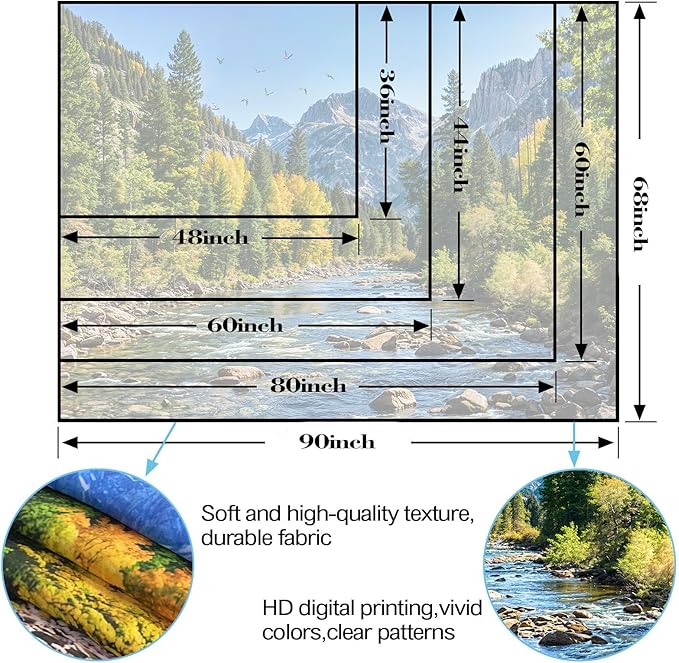 • 🏞️【Easy to Clean and Maintain】: This mountain tapestry is machine washable for easy care. Simply wash on a gentle cycle with cold water, and tumble dry on low or hang to dry. The colors remain vibrant and fresh after multiple washes. And please do not use bleach.