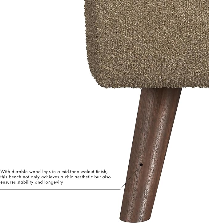 HomePop Modern Storage Bench with Wood Legs Home Décor|Bench with Storage for Living Room & Bedroom - Brown Boucle