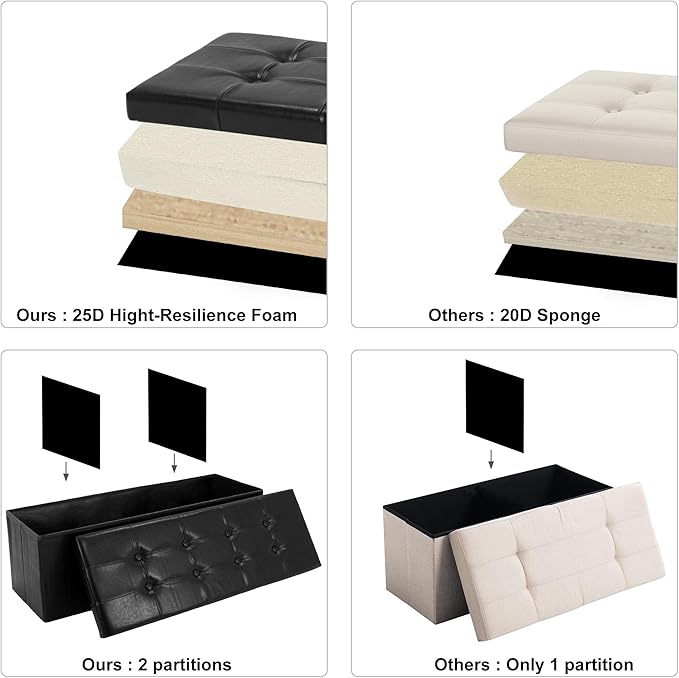 - Seconds to assemble: Only take seconds to set up, no need whatever tools. Simply fold the lower part of the bench for space-saving storage when out of use, then tuck the ottoman under your bed or above the wardrobe.