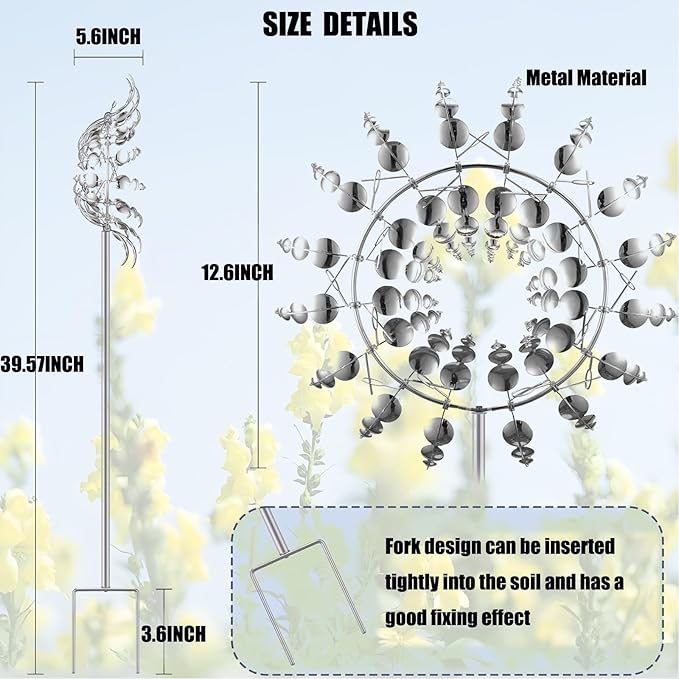 - 【HIGH QUALITY】This garden spinner is constructed with durable iron metal components and a long-lasting combo finish of paint and foil, bright metallic and reflective painting creates a visual sensation in the garden.