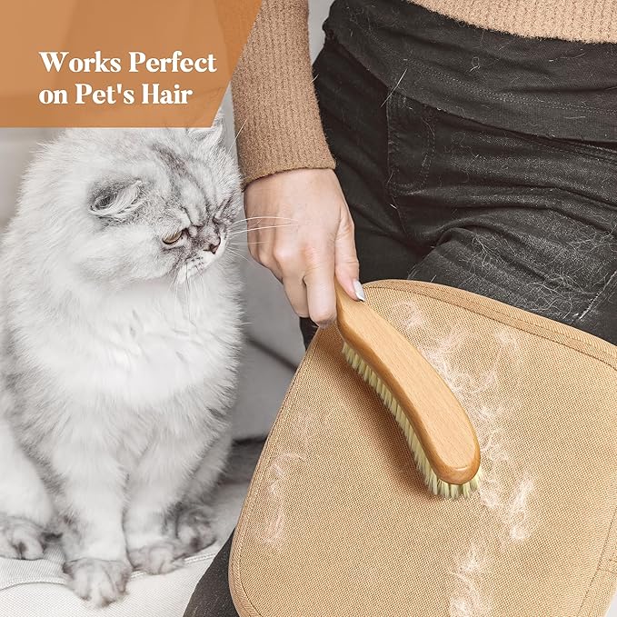 BFWood Clothes Brush - Bristle Lint Brush for Suits, Cashmere, Wool, Velvet, Suede and Pet Hair - Large Beech Wood Handle