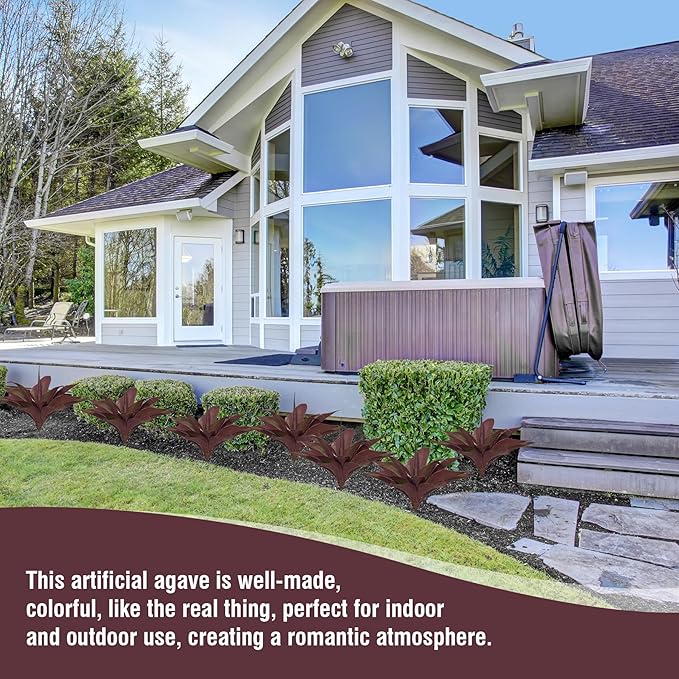 - About the color: natural purple red , replica of the real agave color, delicate and durable, outdoor sun protection.Low Maintenance Unlike real plants, these artificial agave planters require no watering, pruning, or fertilizing. Enjoy the beauty of greenery without the hassle of maintenance.