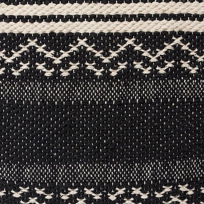 REDEARTH · Tufted Pouf Ottoman with Filler Textured Storage Cube Bean Bag Pouffe Footrest for Living Room, Bedroom, Nursery, Kidsroom; 100% Cotton (17.5"X17.5"X17.5", Ziggurat Obsession Black)