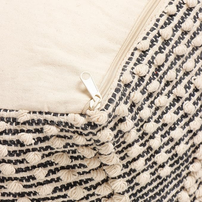 - BEAUTIFULLY DESIGNED AND HANDCRAFTED: The 100% cotton indoor patio Poof comes in a variety of textured patterns that is made on handlooms by skilled artisans offering an excellent choice for foot stool and a convenient way to add comfort and style to your space. Choose your indoor hassock from wide options available that are handcrafted by mix and match of weaves, tassels and prints. It compliments modern, contemporary, boho or farmhouse decor.