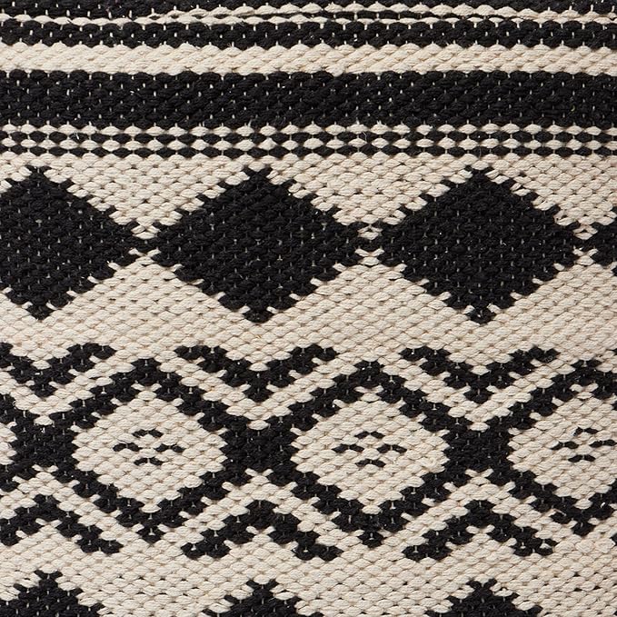 REDEARTH · Tufted Pouf Ottoman with Filler Textured Storage Cube Bean Bag Pouffe Footrest for Living Room, Bedroom, Nursery, Kidsroom; 100% Cotton (17.5"X17.5"X17.5", Linear Diamond Black)