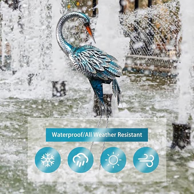 - Stable Garden Decor: The feet of the crane sculpture are U-shaped design and the package including 2 U-shaped stakes, U-shaped stakes can sink deeper in the ground for better securing