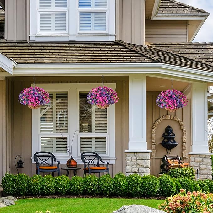 - All-Occasion Decoration: These artificial outdoor hanging flowers basket are perfect for garden, porch, patio, balcony, yard, home, front door, and outside decoration. These artificial hanging flowers with a basket provide the beauty of real flowers without the need for maintenance.