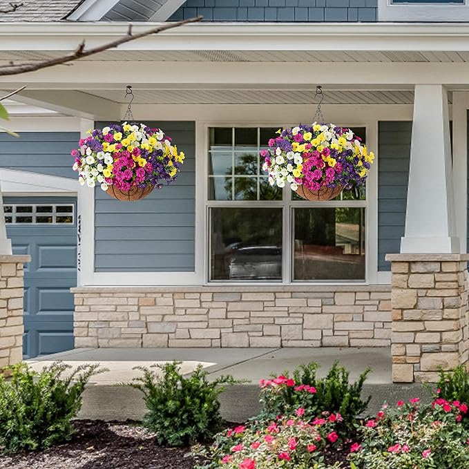- All-Occasion Decoration: These artificial outdoor hanging flowers basket are perfect for garden, porch, patio, balcony, yard, home, front door, and outside decoration. These artificial hanging flowers with a basket provide the beauty of real flowers without the need for maintenance.