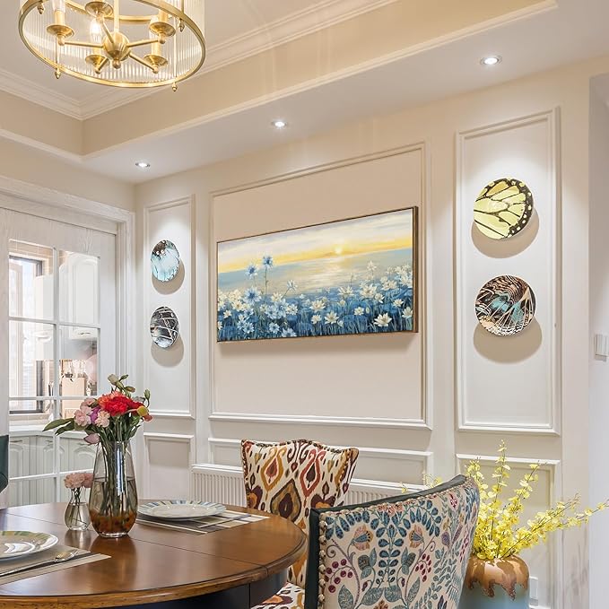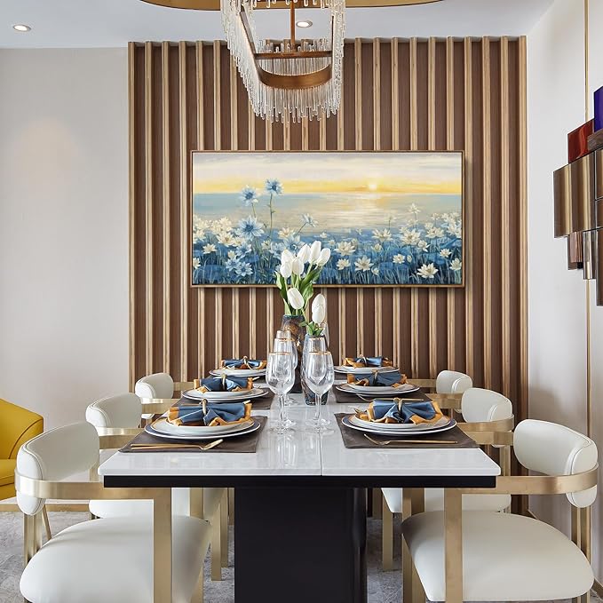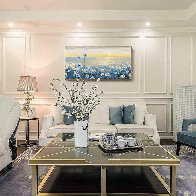 - Great Wall Décor/Gift Idea: Suitable for hanging on walls in a home, office, beach house, or lake cottage,this piece can revitalize any space, be it the living room, bedroom, dining room, bathroom, or study, with its unique artistic ambiance. The meticulously crafted details and original design make this floral painting perfect as a gift idea. The decorative ocean wall art can be a wedding gift, housewarming gift, anniversary gift, engagement party gift, or Valentine's gift.