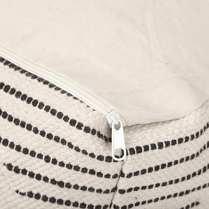 REDEARTH · Tufted Pouf Ottoman with Filler Textured Storage Cube Bean Bag Pouffe Footrest for Living Room, Bedroom, Nursery, Kidsroom; 100% Cotton (17.5"X17.5"X17.5", Loom Story 3 Natural Black)