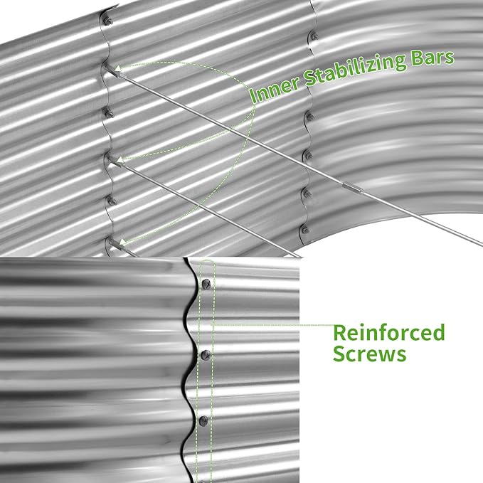 - Upgraded quality and structure: raised garden beds outdoor are made of Q195 galvanized metal sheet, double-layer anti-corrosion galvanizing and oval structure design, which is more beautiful, can withstand greater pressure at the interface, is not easy to loose, and the interface will not Deformed and can be reused for many years.