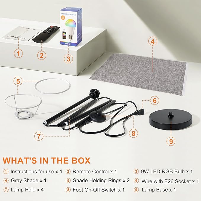 - 【Easy installation 】The tall floor lamp is easy to install—no extra tools are needed. Just follow the instructions to screw in all the parts, and you'll be ready to enjoy customizable lighting! Ideal for gifts.