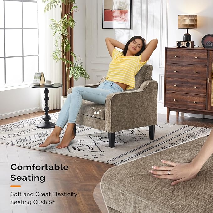 - Home Accent Essential--Our armchair features a minimalistic yet midcentury-style silhouette, making it a timeless piece that fits into most decor styles. Its comfort and style make it perfect for your living room, bedroom, apartment, upstairs loft, cozy nook, or office space.