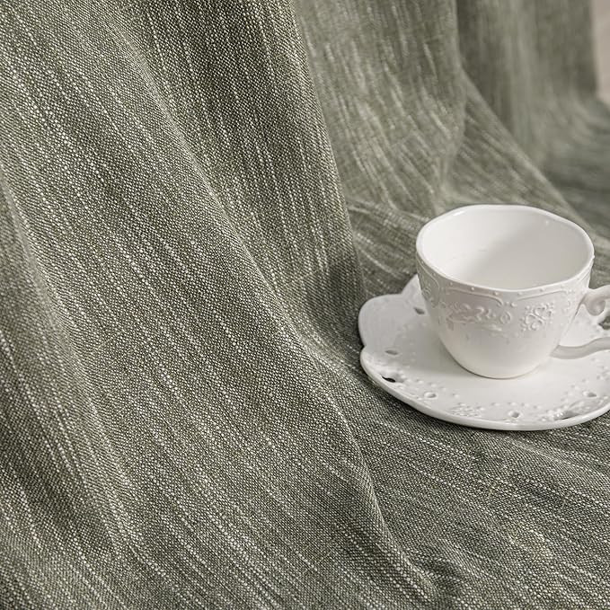 MYSKY HOME 90 Inches Long Living Room Curtains Farmhouse Light Filtering Privacy Curtain Drapes for Patio Door, Linen Look Texture Fabric Bohemian Draperies Soft Touch, 50x90, Olive Green, 2 Panels