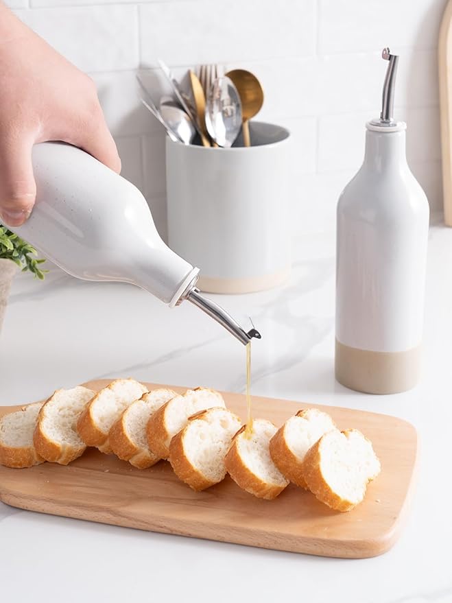 - KEEPS OIL FRESH - Exposure to light can cause olive oil to go rancid. This opaque olive oil dispenser bottle ceramic protects your olive oil or vinegar from harmful UV rays, keeping it fresh longer