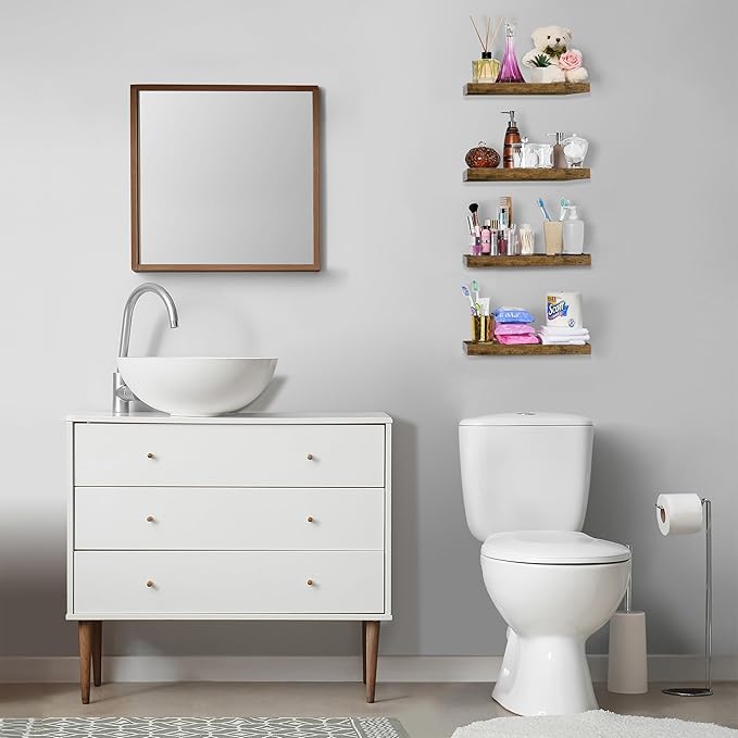 Sorbus Floating Shelves for Wall, Bathroom Shelves Wall Mounted for Kitchen, Bedroom, Living Room, Bathroom Storage, Over Toilet, Hanging Book Shelf for Wall Home Decor (Rustic Brown, 4 Pack)