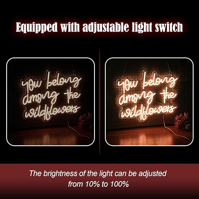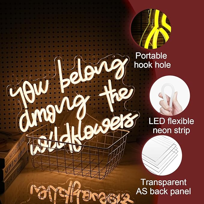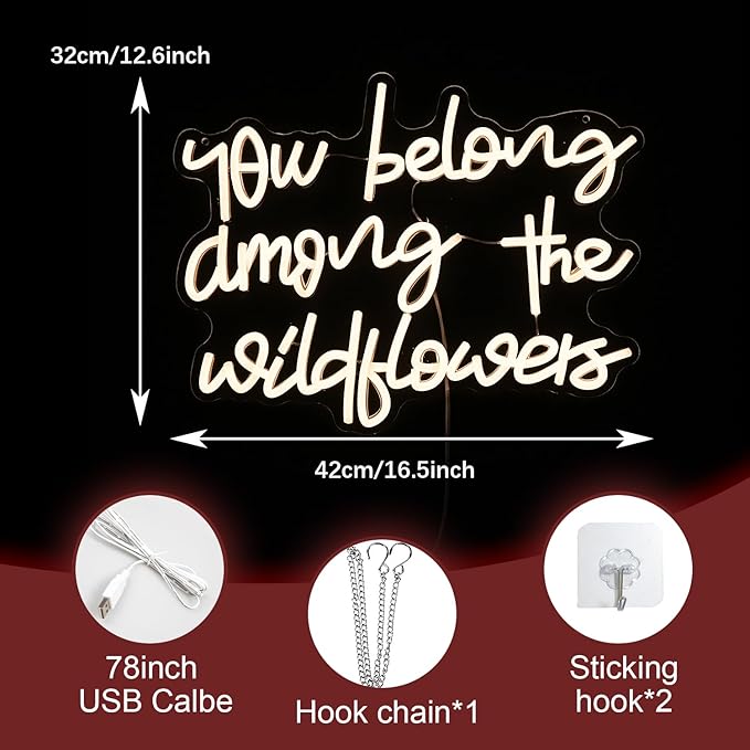 - Advanced materials: You belong among the wildflowers. The neon lights are made of LED flexible strip lights and acrylic boards, with soft and even light, low voltage, reduced energy consumption, and also have a positive impact on the environment.