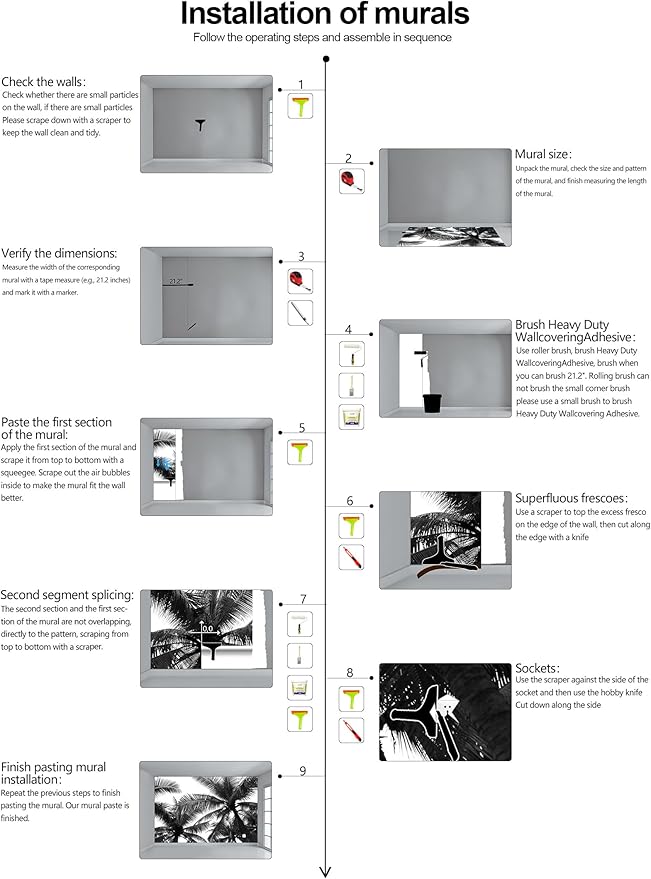 - Warm tip: This mural is not peel and stick, you need to buy your own glue, it is recommended to use Heavy Duty Wallcovering Adhesive.