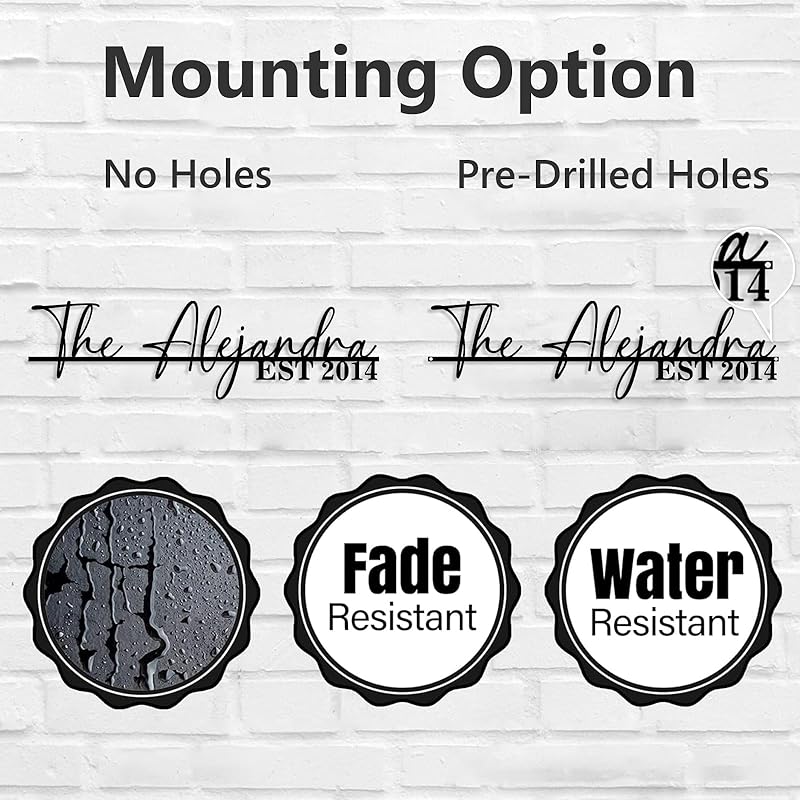 - Easy to hang - Each metal name sign has 2 pilot holes for mounting. It is easy to install with a drill and the included mounting screws, allowing you to put this personalized sign on your doorway or wall within minutes! Our name signs are designed to be sturdy and will not flex or break.