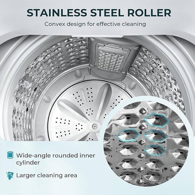 - Protable and High Performance: Euhomy portable washing machine weighs 39. 6 pounds, 18.318.530.7 inches, and can wash up to 20 shirts or 4 jackets (reference data). The grooves on both sides of the machine are designed for easy movement and transportation. Stainless steel inner drum material is not easy to rust. This apartment washing machine has a built-in removable filter disk for filtering lint and pet hair.
