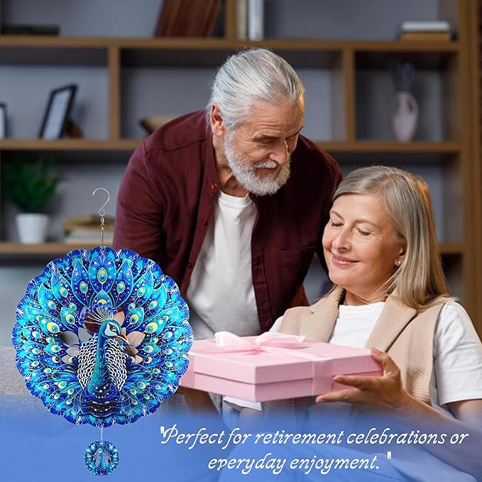 Peacock Gifts for Women, Peacock Wind Spinner Garden Decor, 12 inch 3D Hanging Wind Spinners Outdoor
