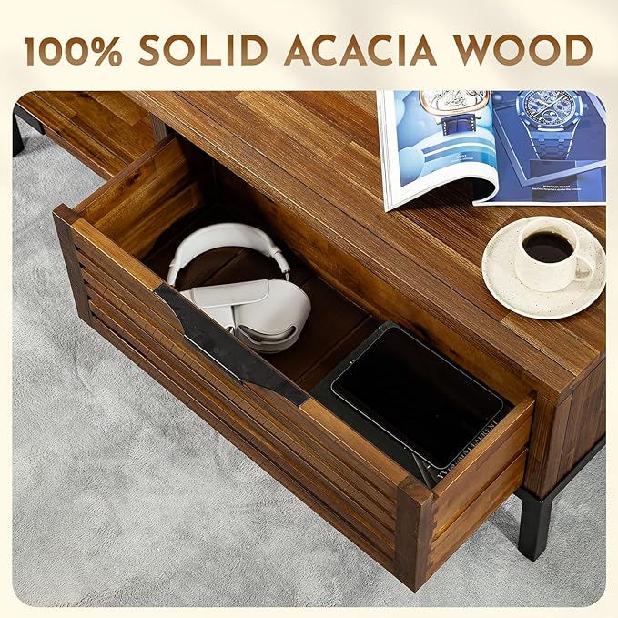 - AMPLE STORAGE OPTIONS: Featuring two spacious drawers and an open shelf, our living room tables provide plenty of room to neatly organize your coffee essentials, books, and decorative items