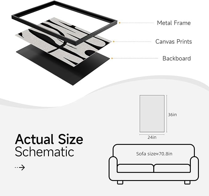 - [Framed Wall Art]: A large framed black and white abstract lines canvas wall art, size is 24x36 inches, each painting with a sturdy, rust-resistant frame