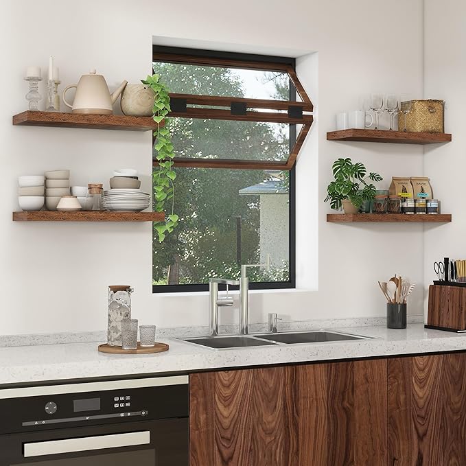Heimlove 24 inch Floating Shelves for Wall,9.3 inch deep Brown Bathroom Over Toilet Shelf,Wall Mounted Rustic Wood Shelves for,Bedroom,Living Room,Kitchen,Office Decor Set of 2-Brown