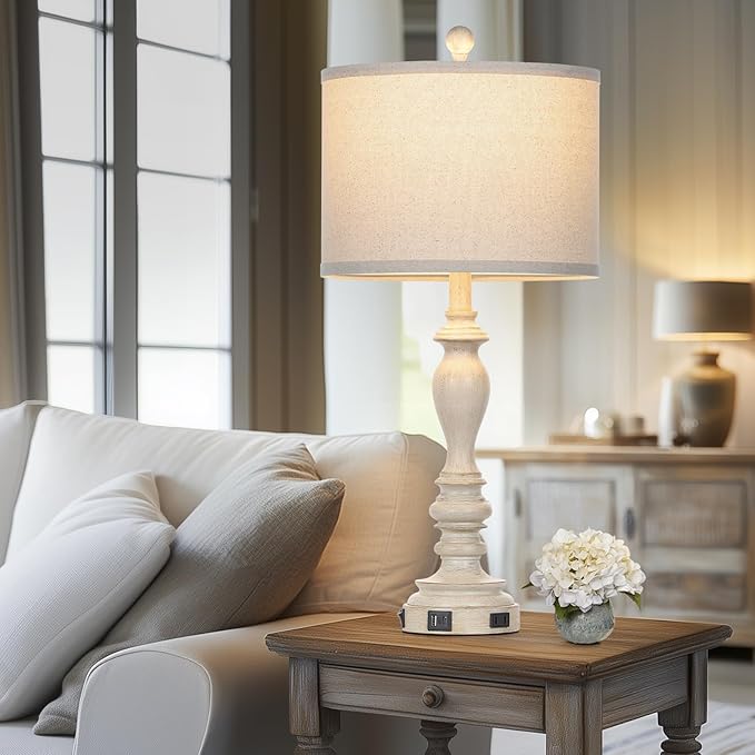 - Rustic Table Lamp:Built-in USB A+C ports,combines with modern & traditional,this 27.5" table lamp set is convenient for you to charge your electronic device like phones or kindle readers regardless of whether the lamp is on or off.
