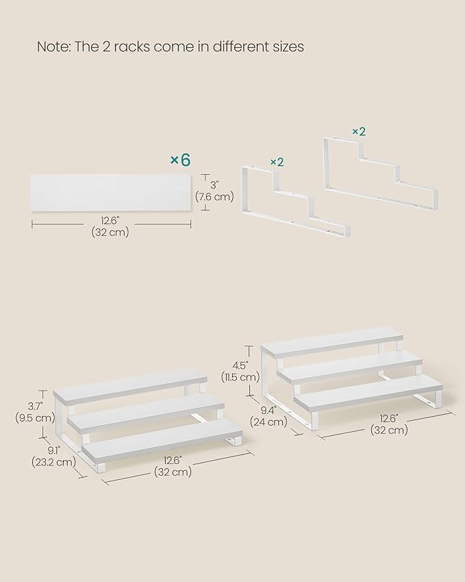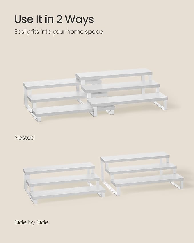 SONGMICS Display Risers, Set of 2 Engineered Wood Perfume Organizer Stand, 3-Tier Cupcake Stand Holder, Spice Rack, Shelf Risers for Figures, Dessert Shelves, Snow White and Cloud White UKCS116W01