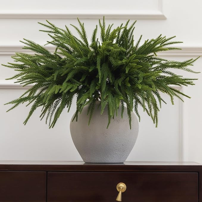 - 【Premium Quality and Natural Appearance】Crafted from high-quality PE, these branches mimic the natural green color of real Norfolk Pine, offering both aesthetic beauty and durability. After opening the package, simply let the product air out for a few hours to eliminate any initial odor, ensuring a better experience. Note: Vase not included.