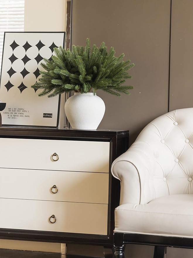 - 【Premium Quality and Natural Appearance】Crafted from high-quality PE, these branches mimic the natural green color of real cedar, offering both aesthetic beauty and durability. After opening the package, simply let the product air out for a few hours to eliminate any initial odor, ensuring a better experience. Note: Vase not included.