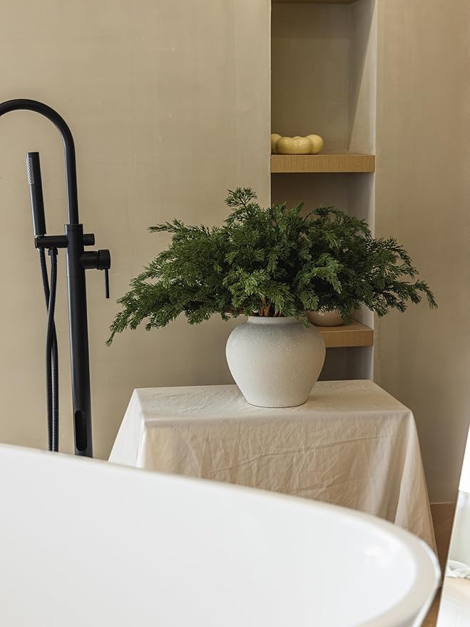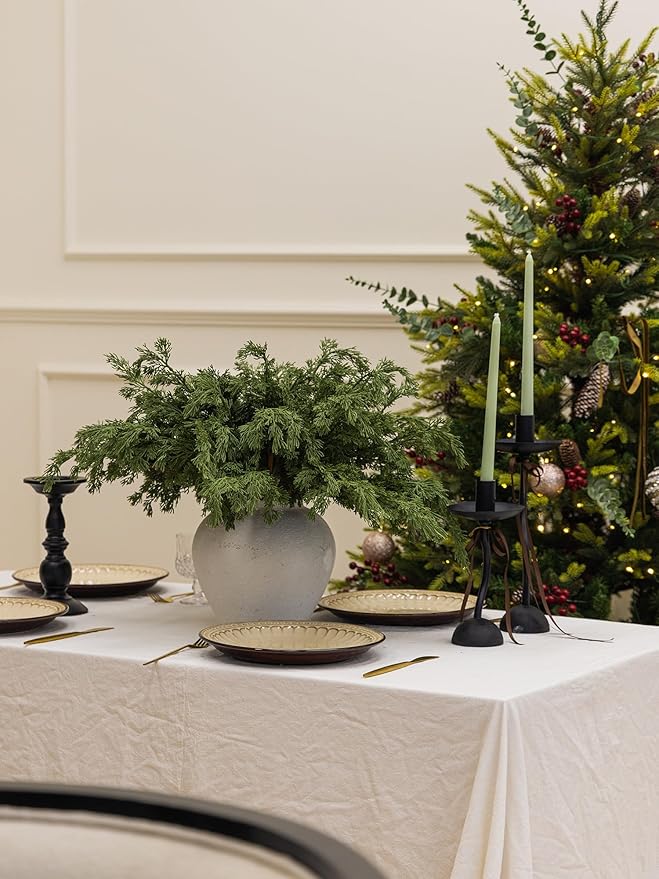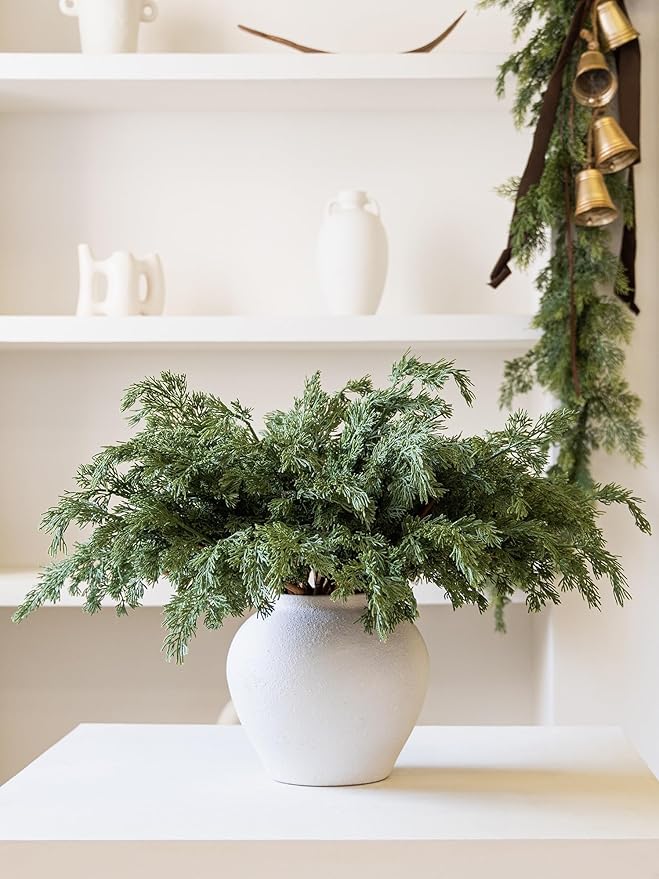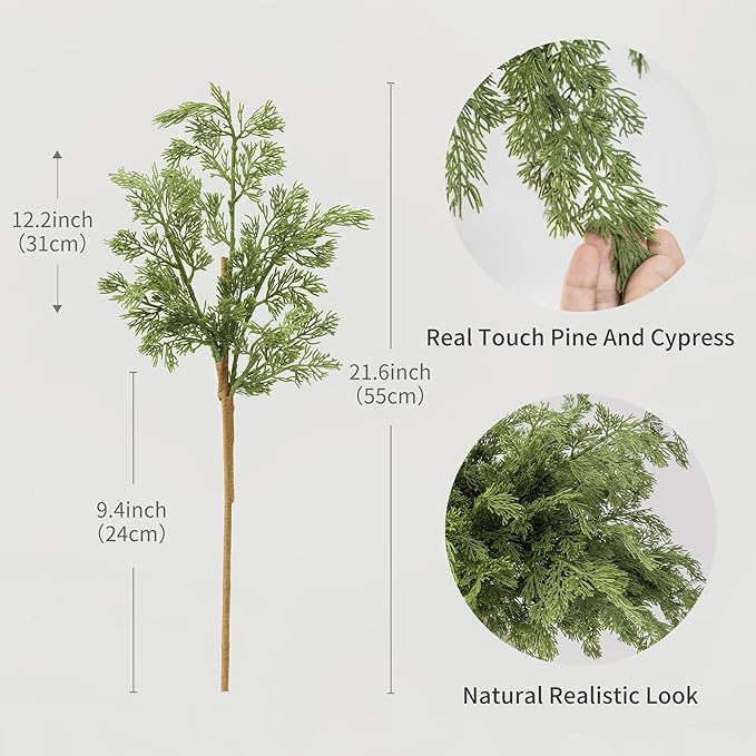 - 【Premium Quality and Natural Appearance】Crafted from high-quality PE, these branches mimic the natural green color of real cedar, offering both aesthetic beauty and durability. After opening the package, simply let the product air out for a few hours to eliminate any initial odor, ensuring a better experience. Note: Vase not included.
