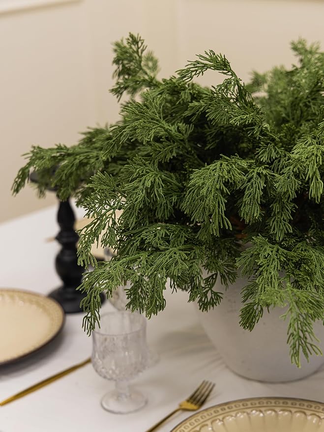 - 【Realistic Cedar Design】Designed to resemble real cedar, these artificial Christmas branches add a festive touch to your home. Use them to decorate tables, corners, fireplaces, and more, making them an essential for any DIY enthusiast.