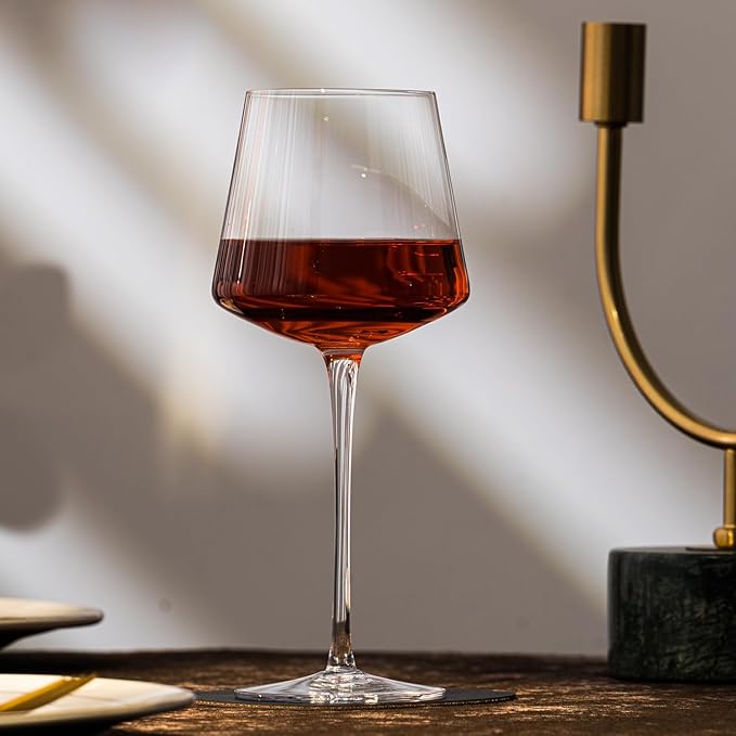 White Red Wine Glasses Set of 6 – 18oz Red Wine Glasses with Tall Long Stem,【Hand Blown】Crystal Wine Glasses- Square Wine Glasses with flat bottom, Wine gifts for Christmas, Wedding, Birthday,