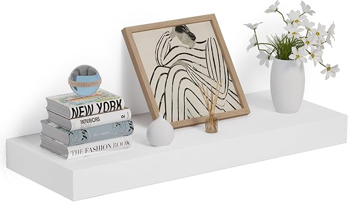 Heimlove 24 x 12 Inch Deep Floating Shelves Wall Mounted with Invisible Brackets,Storage Hanging Shelf for Wall Decor in Bathroom, Bedroom, Toilet, Kitchen, Living Room, Office Set of 1 (White)