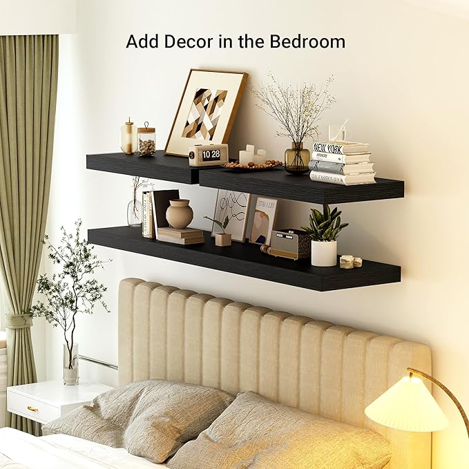 - Sturdy and Effortless Assembly- Includes all necessary hardware to make these floating shelves easy to assemble. We also provide you with detailed install instructions for you to install the shelves in a few minutes.
