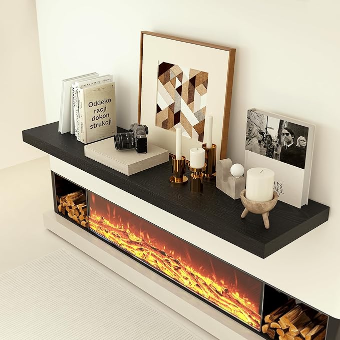 Heimlove 12 Inch Deep Floating Shelves, 48 x 12 inches Long Wall Shelf, Large Display Shelf & Storage Shelf, Rustic Wood Wall Shelves for Fireplace Mantel, Set of 1(Black)