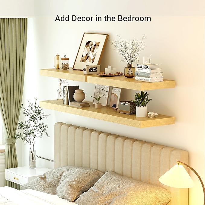 - Sturdy and Effortless Assembly- Includes all necessary hardware to make these floating shelves easy to assemble. We also provide you with detailed install instructions for you to install the shelves in a few minutes.