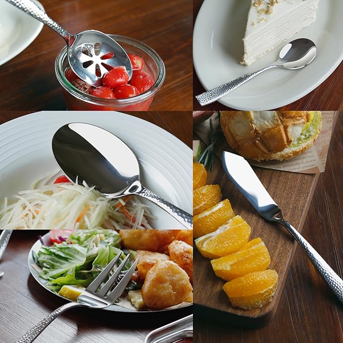 - 【45-PIECE SET】Includes 8 dinner knives, 8 dinner forks, 8 dinner spoons, 8 salad forks and 8 teaspoons; contain matching 5-piece serving set, 1 serving spoon, 1 serving fork, 1 slotted serving spoon, 1 butter knife and 1 sugar spoon, service for 8