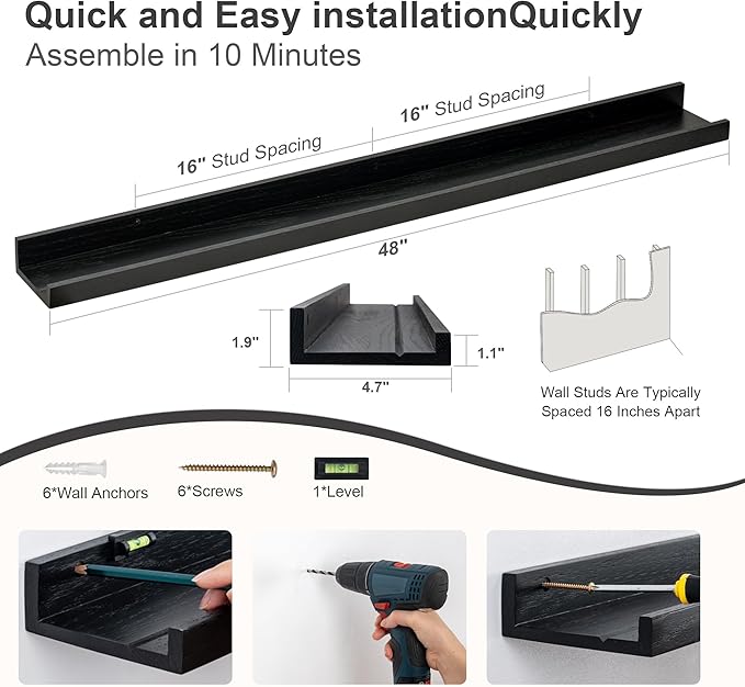 - Multi-Functional: Get creative and find more functions other than the long picture ledge shelf. FLYJOE storage ledge shelves can act as a kids' bookshelf, display shelf for collectibles figures, and more.