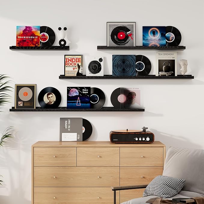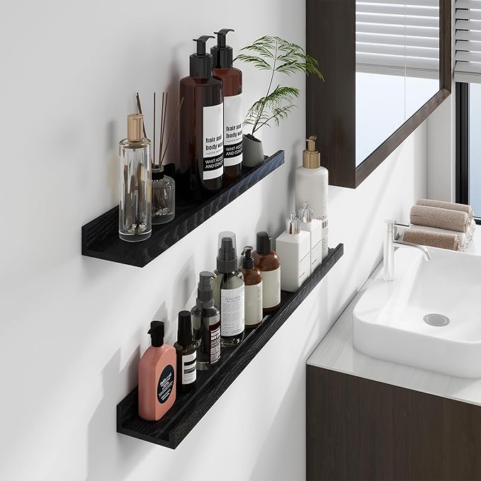 - Picture Ledge Design: Ideal for displaying photos, artwork, small plants, or collectibles, these shelves feature a thoughtful ledge design with a subtle lip and a shallow groove behind it. This design securely holds items in place while maintaining a clean, modern look.