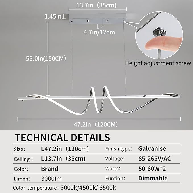 - High Quality and Long Life :Made of high quality aluminum and Electroplated Silver, easy to clean and maintain, the LED light source inside the pendant is extremely energy efficient, consuming up to 80% less power and lasting more than 500,000 hours.